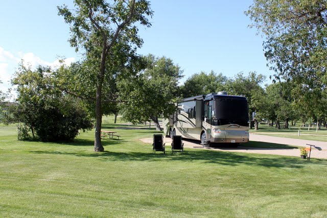 We stopped in Williston, ND, for an overnight on our way to Montana. Williston is a town that has been hit by the oil drilling bug. There are oil rigs everywhere, dust and dirt everywhere, transient workers everywhere. Our one night stay was right off Hwy 2 and listening to the trucks all night , esp. those using jake brakes, was interesting......and this was the best RV park in the area :(