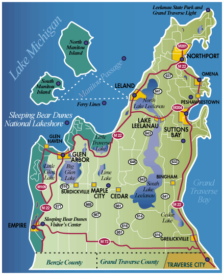 We left the Petoskey area and drove further south and west to the Leelanau Peninsula.  You have to drive to Traverse City to head up into the peninsula.  We stayed at a campsite on Lake Leelanau which is a large lake in the center of the area.